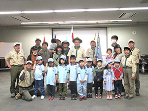 2026年度団入隊上進式が満開の桜のベイコム体育館研修室で行われました、ビーバー隊が新規4名、カブ隊へ上進4名がそれぞれやくそくをしました。また、ビーバー隊、カブ隊、ボーイ隊もそれぞれ隊長が交代し、あらたな門出となりました。2026年発進です。(K3)