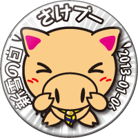 1月の優秀組のカンバッジ『さけブー』。冬の寒い中、大きな声で叫べるかな。1月6日は、耐寒登山で山頂から山びこに、27日にはカブラリーで他団のスカウトに向かって元気な声を出しましょう。