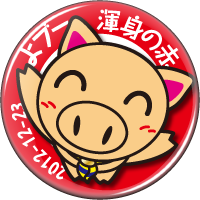 12月の優秀組のカンバッジ『よブー』。12月09日には発表会でみんなを呼んで、23日のハンドインハンドでは募金を呼びかけます。