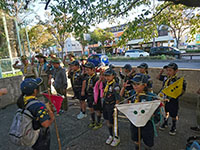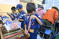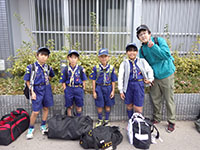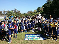 第36回都市交歓は、淡路島へ。7団からはスカウト4名、団長、実行委員長、隊長の7名で参加。今回はスカウトへは立ち寄る場所はあえて明かさず、擬音だけで想像を膨らませて出発しました。まずは『ブルブル』淡路SAではトイレ休憩とあわせて淡路海峡大橋を支える大きな『ケーブル』も見学。次は『フーハー』吹き戻しの里で、1人6本もの吹き戻し作り体験ができました。この後、バスでずっと鳴り続けることになります。静の里公園で昼食の後、『ギューギュー』淡路島牧場で乳しぼり体験。牛乳も少しいただきましたが甘くて美味しかったです。施設に到着し、夜は海辺でキャンプファイヤー! 翌日は、淡路地区のスカウトも参加して交流会を行いました。昼食には頂いたわかめや玉ねぎを使った味噌汁を食べ、淡路島を堪能した2日間となりました。何より天気が良く、プログラムも十二分に楽しめました。(M34)