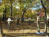 秋が深まる大物公園での隊集会。午前中は、来週のスカ鉄チャレンジのルート決めです。近畿のJR近郊区間を最安料金で大回りするルートを、スマホの乗換アプリを駆使していろいろ考えます。スカウト達は和歌山方面のルートを選択しました。来週はアナログに時刻表で確認しながら乗るのも楽しいのではと思います。午後からは地道な進級訓練。特に初級2名は優秀で、スカウトペースをほとんど誤差なくクリアしました。おやつタイムには隊長から前回の尼カップ優勝のご褒美が! それぞれ好きなマクドナルド商品をほうばりご満悦です。恒例の大物公園ゴミ拾いをして解散となりました。(ひらマー)