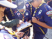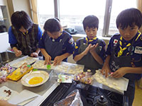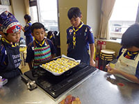 今回の集会は、一風変わった『暗号ビンゴハイク』にチャレンジ。5×5のビンゴを達成するには封筒に入っている課題に挑戦するのですが、課題は暗号でかかれています。しかも、同じ番号でも1番にクリアするとより有利なポイントが入るため各組必死に解読します。大物公園周辺で解決できるものばかりですが、ひいた課題によっては少し時間がかかるものも…。時間までにクリアの予定が、よく頑張っていたので隊長判断でギリギリまで課題に挑戦してもらいました。午後は秋ならではの、落ち葉を拾ってラミネートキーホルダー作りと、食欲の秋のお菓子作り。1日かけてかなり欲張り、秋を満喫しました。暗号ハイクはわずかの差で1組が1位。本日の優秀組となりました。(M34)