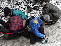 2年ぶりの金剛山耐寒ハイク、今年は積雪していて冬らしい金剛山が見れそう。ボーイ2名、月の輪7名の計9名、大人も合わせて13名で出発。行きの河内長野駅ではバス待ちの列が今までにないくらいの長い行列。他団のボーイやカブ、ビーバーまで色々見かけます。30分ほど待ってやっと乗車。登山口に到着し、登り始めて15分ほどでアイゼンを装着。慣れないアイゼンで歩きにくいようですが、それでも12時丁度ごろに山頂に到着。暖かいカップラーメンがとても美味しかった。ヘトヘトで登ってきたスカウトも、元気に雪遊びをしました。残念ながらアクシデントで山頂での記念写真は残っていませんでした…。全員上進して、リベンジだ。(M34)
