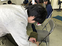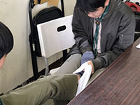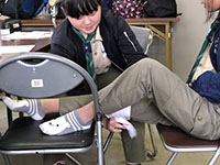 救急講習 ボーイ隊, 行事記録2018 3月 052019 2019年03月03日(日)中消防署 先週に引き続き2月とは思えないほどの陽気の中、スカウトハウスで救急法の講義を受けました。隊長の指導の下、次々と課題をこなしていきます。去年やったせいか三角巾の取り扱いはお手の物で、午前中の予定は全てクリア。お昼はビーバー隊より豚汁のおすそ分けですっかり体を温めて中消防署へ。みっちりと心肺蘇生法とAEDの取り扱いの講義と実習をおこないました。毎年行いますのでいざという時に備えます。(ひらパー)
