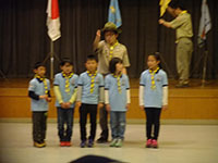 入隊上進式 カブ隊, 行事記録2019 4月 092019 2019年04月07日(日)小田地区会館・大物公園 今年度もまた、入隊上進式の季節になりました。カブ隊からは9名が上進、卒業し、5名の新スカウトを迎え2組13人でのスタートとなりました。式典後すぐにシャツ作りを行い、今年の衣装?も1日のうちに揃いました。大物公園に移動して、お昼ご飯。集散訓練もいつもより早くうまく並べるようにできました。人数が減ったから? いやいや、みんなが頑張ったから。今年のテーマはサバイバル。これから2組で切磋琢磨していきます!(M34)