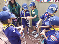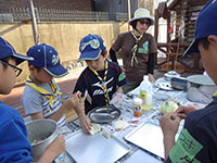 前半は雨のGWでしたが、晴れてくれました。26団との合同くまキャンプということで、JR尼崎集合後26団スカウトハウスまで徒歩で移動します。今回は男女に組み分けし、設営から。はじめてのスカウトがほとんどでかなり時間がかかります。夕食のメニューも各組で決めましたが、これもかなりの時間がかかりました。1時間以上押しで完成。それでもお風呂とボンファイヤーは短縮で行い、1日目が終わりました。2日目、朝食もかなりバタバタ、片付けてる間にうさぎしかも合流して合同隊集会。カブラリーにむけての準備で、対抗ゲームを行います。おしくも7団は3位4位。本番は頑張りましょう。くま振る舞いの昼食後、うさぎしかを送り出したらくまは撤営作業。はじめてということでどれも時間がたっぷりかかりましたが、自分たちの手でなんでも成し遂げたので達成感のある2日間でした。26団さんありがとうございました。(M34)