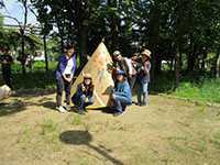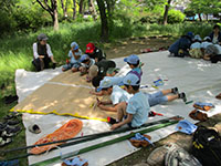 隊集会 ビーバー隊, 行事記録2019 5月 132019 2019年05月12日(日)大物公園 いいお天気でした。新緑まばゆい大物公園での隊集会。再来週の体験入隊の準備集会ですが、パパ・ママの支援でいろいろ作業をしました。また昼食は隊長企画のジャガリコサンドとうまい棒スープ。副長達のアレンジでよりおいしく変化を遂げました。ギャングのその下の弟妹も参加して楽しい一日を過ごしました。(K3)