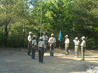 長かった10連休明け、ボーイ隊令和初キャンプ。新入隊員は初めての一泊、大きなリュックで「いこいの家」に向かいます。一泊2日のキャンプで60Lのリュック、十分なはずなのに入りきれない荷物が? いこいの家に到着後、開営式、設営とプログラムは進みます。そして夕食準備、ここで悲劇が! 飯ごうのご飯が(アー(>_<))。キャンプファイヤーも終わり、翌朝はもう撤営作業。ここで隊長のパッキング指導。あらら、コンパクトにリュックに収まるではありませんか。でもこれが初めてのキャンプ、経験経験。疲れたからだで尼崎駅、家族のお迎えで最初のキャンプは終わりました。(K3)