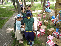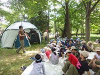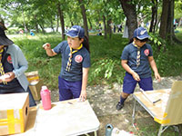 体験入隊 カブ隊, 行事記録2019 5月 282019 2019年05月26日(日)大物公園 毎年恒例の体験入隊ビーバーランド。今回はカブで4コーナーを担当してもらいました。真夏のような暑さなので、コーナーは日影に退避。お店番をしたスカウトたちによれば、結構たくさんのお客さんだったようです。ビーバーランドショーのカブ紹介コーナーでは、カブラリーでやったばかりのホルディリアクックで盛り上がりました。(M34)