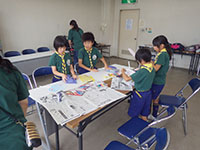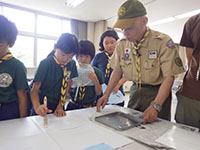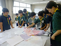 隊集会 カブ隊, 行事記録2019 7月 092019 2019年07月07日(日)小田地区会館・大物公園 キャンプも目前、スタンツの練習のための集会です。両組とも宿泊訓練でかなり決まっていたので仕上げにとりかかっています。本番が楽しみです。今年の夏工作はうちわ作り。好きな布を使って洗濯のりを塗って貼り付け、きれいなうちわを作りました。絵にこだわるスカウトは持ち帰って宿題に。これも舎営当日どんな仕上がりになっているか楽しみです。(M34)