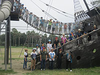 各隊夏期行事の殿を飾って、ビーバー隊は10年ぶりに赤穂市野外活動センターへ、50名参加予定が当日キャンセルが出て奇しくも47人。交通の便が悪いため、7時半集合でしたが遅れることなく、団委員長の見送りを受けてさー赤穂へ出陣じゃー。乗り換え時間が短く心配していましたが、スムースに最初のプログラム海浜公園到着。科学館で勉強の後、塩作り体験。赤穂の塩は辛い(>_<) 昼食後、宿泊地の野外活動センターへ移動、磯遊びソングゲーム。大きな部屋で興奮気味でテンション上がり放し。夕食、朝食とも自炊でリーダー、補助者、ママ達がおいしい食事を作ってくれました。開けて19日月曜日、雨模様の中、再び海浜公園に移動。今度はアスレチック貸し切り状態で遊びまくります。お昼は野外で「討ち入りぶっかけうどん」またまた遊んで、バスに乗り遅れないよう一生懸命歩きました。JR到着時は雨でしたが皆元気に解散し、ビーバーの暑い夏を終えました。(K3)