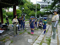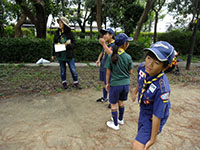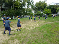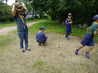 9月1日の活動は大物公園でチャレンジ章修得の体力測定。いつもの組編成ではなく、うさぎ、しか、くまスカウトの3グループに分かれての活動です。「50m走」は全員共通、うさぎ、しかスカウトは「持ち運び走」と「立ち幅とび」、くまスカウトは「ジグザグドリブル」と「斜め懸垂」で個人記録をとります。その後、リーダーが子供の頃によく遊んだ「だるまさんがころんだ」と「かんけり」、最後に組対抗で「ドッチビー」で盛り上がりました。今日は午前中だけの活動でしたが、心配された雨も降らずにすみました。(雨男の隊長が休みだったから!?)(Massa)