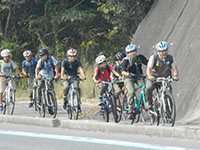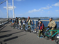 秋のボーイ隊行事の目玉「しまなみ海道サイクリング」が、台風19号の接近で実施が危ぶまれていましたが、12日午後ぎりぎりで予定通りで決定。21時30分JR尼崎に、サポート車両と参加者16人が集合、家族の見送りを受け、サポート車両と分れ、14名は今治行きの高速バス乗り場の梅田へ。明けて13日早朝今治市に到着、JRとミニハイクで今治市糸山サイクリングターミナルへ行きサポート車両と合流。朝食後、それぞれ自転車を借り、台風一過の若干風の強い中、二日間70km弱の「しまなみ海道」サイクリングを開始しました。大三島橋はスイスイ、しかし宮窪町に至る坂はこれから繰り返される試練の第一歩でした。大島で村上水軍博物館で歴史を学び、潮流体験の船に乗り、下船後今日の目的地多々羅キャンプ場を目指します。伯方島ではサポート隊に内緒で伯方の塩ソフトをたべ、予定時間内に目的地に到着、温泉に入浴後夕食。GB会議で今日の評価反省と明日のルート、課題、安全対策を確認し、第1日を終了しました。事故もなく、全員(年寄りリーダーを含めて)極めて元気!(K3)