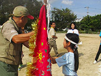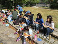秋たけなわ、恒例のビーバーカブ合同運動会です。ところが、地域や、学校行事の関係でどちらの隊も半数近くが欠席、ちょっぴりさみしい感じでしたが、それでも50名を超す参加者で大いに盛り上がりました。大物公園に集合後、稲川公園に移動、紅白に分かれ、特設グラウンドで、徒競走や綱引き、玉入れ、キャタピラー競争など熱戦を繰り広げ、今年は大差で白組が優勝しました。お昼はこれまた恒例のおいしいカレー、おやつはポップコーンとお腹いっぱい。午後からはそれぞれ別のプログラムで秋の隊集会を終えました。(K3)