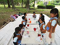 3連休の中日とあって、参加者も今年ワーストワン。午前中は台風19号被災者義捐金募金活動を杭瀬商店街で行い、これまた人通りの少ない中、大きな声で募金を呼びかけ、1時間で多くの方々に協力をいただき、また、励ましのことばもいただきました。本当にありがとうございました。大物公園に帰ると、イタリアデーのピザとマカロニスープが待っています。おなかがいっぱいになると、食べれるシイの実採取で小田南公園に移動。沢山拾い、次回隊集会に食べる予定です。そのあと紙飛行機作りをし、おやつにカレーナンを食べて少ない人数の隊集会はおしまいです。(K3)