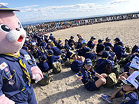 3年に1度の県連盟カブラリー「ジャングルブック シェアカーンのいたずら」が開催。7団としての参加者は7名となり、1組に合体して参加しました。事前に決めたコースどおり、須磨寺駅からスタート。ネイチャービンゴ、ソングのコーナー、暗号のコーナーをめぐり、途中(美しい?)さるのパンダローグにも会い、そしてシェアカーンにも無事に会うことが出来、ゴールの須磨浦海岸へ。県全体で指導者含め1200名を超える圧巻の人数で、カブコールを行うなど普段とケタ違いの規模の活動を体験しました。都市交歓参加組は3日連続の活動でよく頑張りました。(M34)