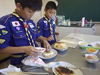 いよいよ年末も近づき、クリスマス会です。わずかな練習時間しかありませんでしたが、発表会ということで各組ソングの披露をしました。課題曲と自由曲があり、どちらも良い出来。それ以外には、今年は1枚でしたが手品の披露や、リーダーのゲームや、クイズ、最後はプレゼント交換で盛り上がりました。優秀組はソングの声が大きかった1組。午後はくまスカウトが残り、月の輪集会をしました。人数の少なさを生かして、1月集会のバルーンアートの試行、ウォッグルの製作、お菓子作りなど、フットワーク軽く色々やってみました。料理の残りも分担して持ち帰り、いつにも増しておみやげいっぱいなくまスカウト達でした。(M34)