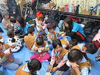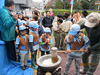 午前中ユニセフ募金、風水害義捐金募金を終えると、東寺島会館に移動。早朝から準備していたリーダーと合流。おいしそうなお餅が搗き揚がっています。それとは別にでお餅つきをちょっとだけ体験しました。そして、つきたてのきなこ餅、すまし、白味噌のお雑煮、あんこ餅と昼食代わりにいただき早い正月気分を味わいました。そして、ビーバー隊恒例のキャンディ交換。今回はカブ、ボーイも参加しているので50個近いキャンディが交換されます。スペッシャルはカブにほぼ取られてしまいビーバーの悔しがること。80名近くが東寺島会館にひしめき満員電車状態でうるさいくらいでしたが、賑やかな方が7団に似合います。とってもたのしい一時でした。(K3)
