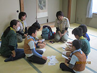 リスの道 ビーバー隊, 行事記録2019 1月 142020 2020年01月12日(日)小田南生涯学習プラザ 今年度第1回のリスの道訓練。カブ隊の集会におじゃまして一緒に遊びました。8名中5人の参加でしたが、お年玉や記念のチーフリングももらって、カブ隊の中で楽しい一時を過ごしました。お昼はリスの道恒例マック。今回はビッグマックにポテトの豪華版。カブ隊のみんなにうらやましがられましたが、がっつり食べて戸外へ。リスの道ハンドブックを少し勉強して、周辺の公園巡りで体力遊びをして解散。(K3)