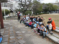1月とは思えない暖かさ、快晴そして無風(>_<)。室内で凧作りを行い、完成後戸外で凧揚げのパターンですが、今回は青空の下で、シートを敷いて凧作り。完成後、稲川公園に移動して凧揚げでしたが、前述の通り無風状態で、各自全力疾走凧揚げとなりました。約1時間走り回り、昼食。たっぷりのカレースープでお腹もいっぱい。ボールゲーム後またまた凧揚げでしたが、状況はあまり変わらず残念でした。OBのJSDAFからのお土産をじゃんけんゲームで分け盛り上がりました。(K3)