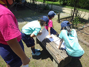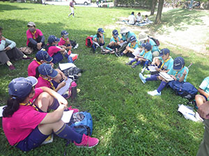 午前は、はじめての新しい生涯学習プラザ(旧:地区会館)。”あまなな探偵”として、とあるカブからの依頼で「ジャングルブック」の映画を見て、クイズの答えを教えてあげるという、ユニークな集会になりました。ただ見るだけではなかったので、みんな鉛筆を持ちながら、集中してみていましたね。あつくなってきたころに、外へ…。自転車で上坂部西公園へ。観察ビンゴで、リーダーと心を合わせて答えも合わせる。なかなか難しかったですね。どちらの成績もよかった1組を優秀組としました。帰ったら、依頼のお礼?の大きなプリッツをいただきました。一人一つの大盤振る舞いでした。(M34)