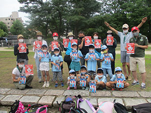 天気予報が良い方に外れます。雨が晴天に! 予定通り住吉川ハイクを実施。コロナ自粛で電車もがらがら。紫外線とオゾンをいっぱい浴びてしっかり魚崎から歩き目的地へ。しっかり歩いて今までより格段に多い水量に圧倒されましたが、思い切り水鉄砲を楽しみました。帰りもしっかり歩いて恒例のアイスを食べ、大物公園に帰ると今度は、CHEER UPスカウトに笑顔のキャンペーングリコプリッツが待っていてみんな笑顔に! 野外活動の基本と新しい日常をさぐりながら楽しいビーバー活動を展開していきます。(K3)