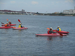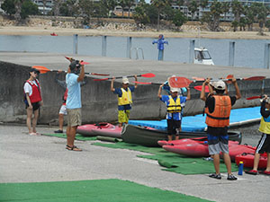 本来は県合同野営の真っ最中のこの日、サイクリング&カヌー体験隊ハイクを実施しました。快晴の中、午前中は芦屋のB&G体育館迄サイクリング。課題の拠点を次々にこなしていきます。12時過ぎにカヌー会場に到達し昼食、会議室で着替えてカヌー体験。ほとんどのスカウトが体験済みでみんな要領よくスイスイ海面を滑ります。1時間弱の海面での体験を終えてセレモニー。帰りは炎天下の中黙々と尼崎を目指します。途中、あまりの暑さにアイスの配給!生き返ります。全員事故も熱中症もなく元気に大物公園に帰り着きました。(ひらパー)