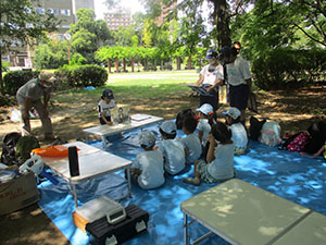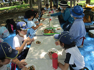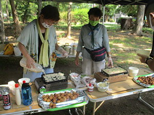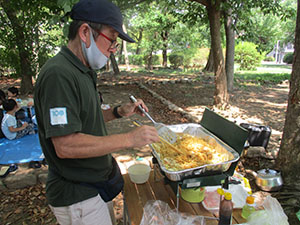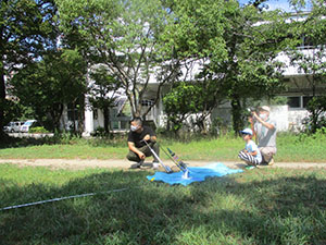 8月最後の集会も大物公園、すごく暑いけど木陰なら何とかしのげます。開会セレモニーは同じ場所でのボーイ隊と合同。新型コロナの話を尼崎医療センター勤務のTママから聞きました。今回はロケットの最終計測でチャンピオンを決めます。そして、お昼はたこ焼き、焼きそばパーティ。そして何と綿菓子(のはずが見事失敗、次回に持ち越し)、ロケットはみんなすごい距離を飛翔しびっくり。昼食後、稲川公園での飛翔もすごい距離で大成功でした。ミルクせんべいじゃんけんで盛り上がり、3回続いた暑い暑い8月集会も終わりました。(K3)