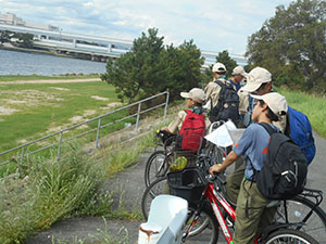 団でのスカウトデーの活動が中止となり各隊での活動となった今回、ボーイ隊はいつ来るかわからない南海地震による大津波のハザードマップ作りと実地調査を行いました。午前中は基本訓練の復習と尼崎市の津波ハザードマップ作製、年功章タグの作成をすこやかデイサービスセンターで行いました。昼食後、市南部の防潮堤まで自転車で移動、防潮堤の高さを実感した後、尼ロックへ移動、大阪湾と尼崎港の潮位差の説明を受けた後、北運河を経て武庫川左岸堤防へ。ここでも堤防の高さと決壊時の被害予想を隊長から聞いた後、大物公園に帰着。入隊時にたてた誓い「いつも他の人を助けます」を思い起こして解散しました。(ひらパー)