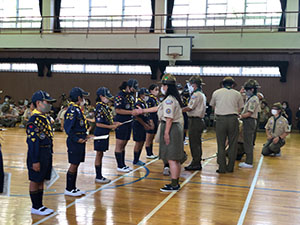 地区推進大会 カブ隊, 行事記録2020 9月 302020 2020年09月27日(日)北小学校 今回の地区推進大会は14団さんの担当ということで会場の尼崎北小学校までバス移動。カブ隊として2年以上頑張ったスカウト3名が表彰されました。きれいに回れ右などの動きができてたね。とても格好よかったよ。大会後は椀田公園に行き、昼食→月の輪のおさらいの後、公園で遊びました。もう少し遊びたいというスカウトの要望で、帰りを電車からバスに変更。少人数だったのでのんびりとした活動でした。(29Da)
