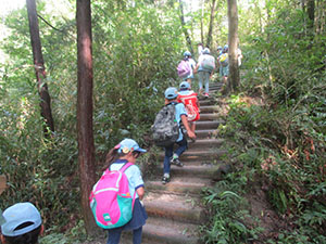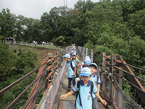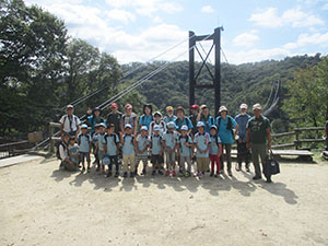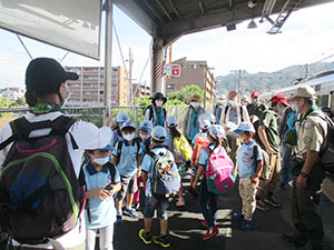 台風一過の青空といかないまでも、まあまあのハイク日和となりました。コロナ退散復活ハイク第2弾で8年ぶりの星のブランコハイクです。下車駅の河内磐船駅で、スカウトは分離し、パパ・ママはコンパスを使って読図訓練をしながら目的地へ。全員が予定通り星田園地に到着し、初めての吊り橋体験にびっくりこわごわ。やまびこひろばで昼食後、再び別れ、パパ・ママはオプションの磐船神社の岩窟くぐりで生まれ変わるはずでしたが、雨の影響で閉鎖中。参拝だけして磐船峡、鮎止めの滝を周り、ピトンの小屋で合流。ここでビーバー達がボルダリングに挑戦し遊びました。そして、一生懸命歩いて、河内磐船駅前でのジュースおいしかったね。(K3)