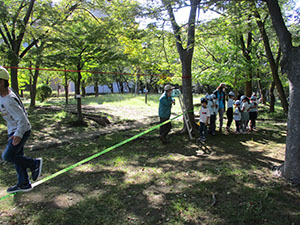 突き抜けるような青空の下、コロナ退散を願ってビーバー・カブ合同運動会が稲川公園で開催されました。スカウト、保護者、体験60名が赤白2組に分かれ、ボール運びやポール渡し、徒競走、綱引き、全員リレーなどの競技種目に挑戦し、僅差で今年は赤組が優勝し、団委員長より優勝旗、優勝カップを授与されました。その後は大物公園に帰りカレーの昼食。そしてスラップラインに挑戦し、大物公園の味覚、槙の実を賞味。おやつはポップコーンとビッグマシュマロでお腹いっぱい。戸外で思い切り遊んだ一日でした。(K3)