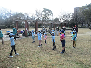 隊集会 ビーバー隊, 行事記録2020 3月 022021 2021年02月28日(日)大物公園 三密対策、マスク着用、消毒をばっちり行い、活動自粛解除より一足先に、隊集会を行いました。卒業・上進試験で15科目にわたってさまざまな実技試験を行いました。今回は新種の課目も増え、相当苦労するかと思いましたが、そこは体力自慢のアマナナビーバー参加全員が優秀な成績で達成メダルを獲得しました。お昼は、コロッケドッグとスープでお腹いっぱい。すっかり春めき、公園の梅もちらほらの中、コロナをぶっとばした元気な隊集会でした。(K3)