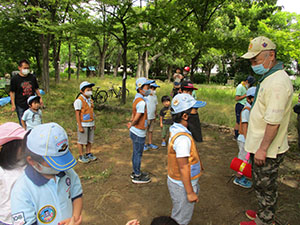 コロナ感染対策をして、屋外での隊集会を実施しました。ビーバーにとってリモートでの活動は、こんな長期間にわたっては似合わないし、無理があります。よって青空の下大物公園で集まりました。今回は前に作ったPETボトルロケットの改修でより安全に大型化しましたが、飛ばしてみると大失敗。前回の飛翔きょりの1/3以下で大不評でした。気を取り直して、小田南公園の山桃採りを実施。これも先週の下見時がピークで小さい物ばかり。それでも自然の恵みをみんなで味わいました。この山桃、大物公園のびわ、近所のマルベリー、いずれも旬の時期をすぎており、集会ができなかった事が悔やまれます。でもこの夏の本格再開に向け、ソーシャルディスタンス訓練などしながら梅雨空を全く感じない青空の下での集会を終えました。(K3)