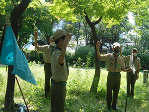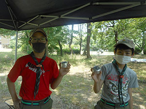 隊集会 ボーイ隊, 行事記録2021 7月 222021 2021年07月11日(日)大物公園 きょうは梅雨の晴れ間で朝から暑くなりました。午前中はみんなが持ってきたアルミ缶を使ってアルコールストーブを製作、硬い缶の底をくりぬくのに四苦八苦。リーダーの力を借りながらも全員で作り上げ、メスティンを使って昼食を準備できました。結構強い火力にちょっとびっくり。午後はスカウトソング章の修得のため2級スカウトがみんなにソング指導。コロナの関係で大声は出せないけれど、ちょっとレパートリーが増えたかな?(sk)