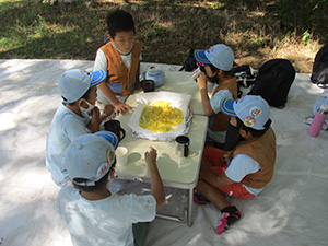 待ちに待った隊集会、リーダーもそうですが、集まってくるビーバー達もなんとなくウキウキ気分が感じられます。もちろん感染予防対策は従来より厳しくして、青空の下活動再開です。今日は体験4名も参加して内容盛りだくさんです。最初は肩慣らしのじゃんけんゲーム、そしてナンバーボール取り、落ち着いたところで紙芝居。隊長手製のゴム銃在庫処分、同じく手製のバードコール在庫処分と続き、お昼は久々のオニコン(おにぎり重量コンテスト)。そしてスラップライン、休む間もなく小田南公園に遠征して、スダ椎の実採取。これは次回のおやつになります。大物公園に帰ると、おやつの揚げたてポテトとジュース。まるでおせち料理のような集会でしたが、元気なビーバー達と活動できる喜びを感じた一日でした。(K3)