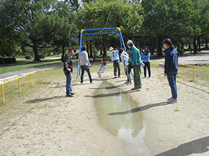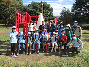 緊急事態解除後初めての電車移動のハイク、実に4ヶ月ぶり。それだけに夜来の雨はやきもきしましたが、午後には晴の予報に期待して実行しました。行き先は四条畷市の深北緑地。広い敷地にいろいろな遊具があります。小雨決行予定でしたので、すべり台拭き用に雑巾まで用意していったのですが、スカウトの熱意でそんなのへっちゃらで結局お尻は濡れ濡れとなりました。今までのコロナストレスをここで一挙に解消しようあらゆる遊具に挑戦し、堪能しました。マスクをしながらも、大きな歓声と動き回れる喜びは何物にも代えがたい物だとつくづく感じました。緑の広場での徒競走では、しばらくお蔵入りしていた隊長得意の「ヨーイ、天丼、海鮮丼」もとびだし、キレはまだまださびついていませんでした。昨日から比べて一挙に季節が進みましたが、気持ちのいい秋空でした。(K3)