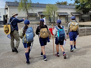 昨年は中止に追い込まれた都市交歓ですが、2年ぶりに開催。7団からは隊長1人とスカウト2人、デンコーチとして1名の4名での参加です。くまスカウト対象に日帰りで「京都・太秦映画村」へ「タイムトラベル」へ出発! 今回は、往復の交通ルートも各組で調べたうえで電車に乗ります。指導者・実行委員はハラハラで見守りますが、オンタイムで映画村に到着。入場したらポイントラリーを早速スタート。暑すぎず、寒すぎずのちょうどいい気候で映画村内の周遊もはかどったようです。指導者が下見に来た時よりも人出が多く、コーナーによっては開催時間も変わっていましたがスカウトたちはうまく時間を使っていました。帰りは電車も混んでおりましたがJR尼崎駅まで元気に帰ってきて、文集も提出して解散しました。いつもなら都市交歓は1回だけの行事ですが、今年は11月に月の輪集会があります。1か月後にまた会おう!(M34)