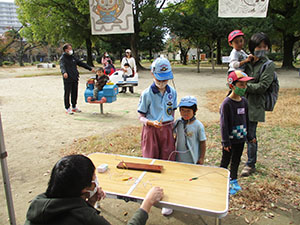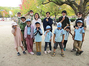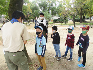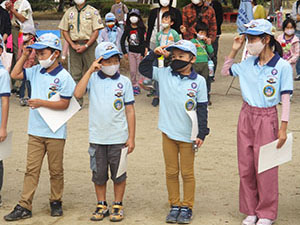 二年越しの地区ビーバーまつりがようやく実施されました。しかし中止か実行か迷うようなお天気でしたが、開会式の頃にはいいお天気となり、一般参児童100人とその保護者が参加してにぎやかな催しとなりました。今回のテーマは「尼つ子忍者にゅうもん」で鬼滅の刃をもじって柱のコーナー8つに挑戦していきます。最初に四月に予定の精励章表彰を行い、いよいよ開幕です。7団は恋柱「甘露寺密璃」のコーナーで「イライラ棒」を5基設置。みんな、音の鳴らないよういらいらしていました。あまななビーバーは4名とギャング2名でしたが、一般参加10名を加え、2個班として、ゲームに挑みました。往復ともバスで、解散時にはご褒美のアイスをもらい楽しい一日を終えました。(K3)