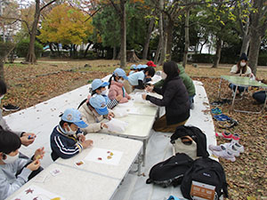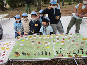 11月は他の場所での行事でしたが、初冬というより、晩秋の風情の大物公園で隊集会です。公園の木々もすっかり葉を落としていますが、まだまだ紅葉の名残を感じさせてくれています。今日はその落ち葉を集めての工作をしました。それぞれがいろいろな落ち葉を集め、これぞという一点作品を作ります。お昼ご飯は、久しぶりにメスティンを使ってのご飯炊き。時間の都合でオニギラズは大人だけでしたが、秋味の豚汁とでお腹いっぱい。見学のカブ年代から隊長の言うことを全く聞かないビーバー達だとの鋭い指摘を受け、みんな納得した集会でした。この秋の風景もこれで見納めです。(K3)