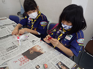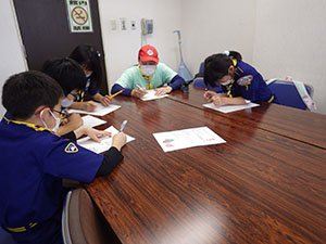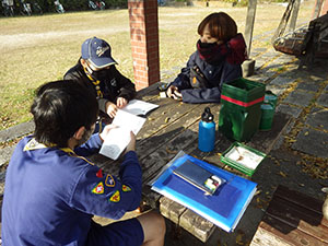 午前はサンシビック尼崎にて、クリスマス会の準備、ネッチリング作り、年賀状作りをしました。ネッチリングは各自が持ってきたフィギュアに穴を開けたり、土台につけたりしましたが、一番人気は福田インストラクターに教わったウォッグルです。覚えてしまえば単純な作業なのですが…。器用なスカウト、不器用なスカウトがよくわかりました(笑)午後は大物公園に戻って昼食後、カブブック・チャレンジブックの未取得のものに取り組みました。なんとか進級の目処はたった…かな。(Y.M)