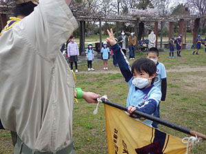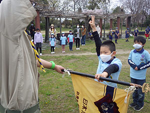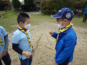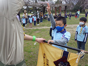 2022年度の始まりです。午前は7団全体での入隊・上進式をしました。カブ隊では3名の、くま・しかスカウトを送り出し、ビーバーから可愛い3名のうさぎスカウトを迎え入れました。デンリーダーさんも継続2名、新規2名の4人体制です。リーダー6名とデンリーダー4名、スカウト13名で、今年も厳しく?楽しい活動をしていきましょう。午後は各隊に分かれての隊集会です。毎年恒例の集散訓練に自己紹介ジャンケンゲームをしました。ジャンケンゲームではアドリブでユニークな自己紹介もあり、今後のみんなのユーモアのセンスにも期待です。(M.Y)