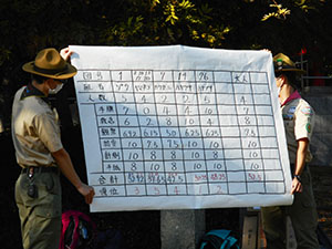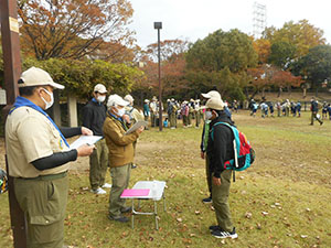 BS尼カップ ボーイ隊, 行事記録2021 11月 242021 2021年11月14日(日)元浜緑地 きょうは尼崎地区のボーイスカウトが集まって、日頃訓練しているスカウト技能を披露するBS尼カップの日です。あまななボーイ隊からは1班が参加しました。元浜緑地を中心のポイントラリー形式で課題に取り組みます。わがカワセミ班は一番遠いポイントを最初に引き当ててしまいましたが、各課題をこなしながらお昼頃にはゴールしました。ポイント合計の最終順位は残念ながら4位となり、次回に課題を残すことに。お疲れ様でした。(sakura)
