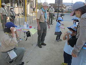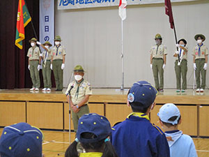 園和小学校での、第71回地区活動推進大会に参加しました。式典はやんちゃなBVはおらず隊長げんこつもなく平穏に終わりました。午後からはハタヤンの指示する園田地区の公園を回り課題をこなすポイントゲーム。いろいろな通信をこなし、最後は7団担当のITO(糸)電話で締めくくりました。BV隊は結隊以来初めて地区精励章受賞者がなく、いささか寂しい物がありましたが、その代わりOBのカブやボーイが表彰され、連盟旗先導やソングリーダーで奉仕する成長したスカウトを見て、感慨深い物がありました。(K3)