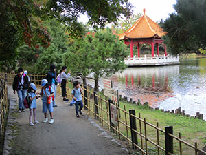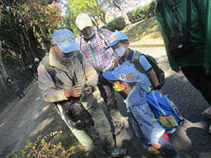突き抜けるような青空の下、伊丹市昆虫館に行ってきました。JR北伊丹駅から緑が丘公園をぬけ、昆陽池公園まで紅葉の進む道を歩きました。昆虫館はビーバーを充分喜ばせるものであり、ヘラクレスカブトムシの本物に興奮したり、チョウチョウのいっぱい飛んでいる温室で指にとまらせたりしました。ここでは隊長のおごりで缶バッジを買ってもらいおみやげにしました。お昼ご飯は野鳥の見える池畔で食べ、それからまた公園の自然の中を帰ります。帰路の電車は最前列の運転士席後、来週の鉄ちゃん行事の予行演習です。ただ予想外は最後の合い言葉、尼崎駅構内の洋菓子店の香りがとてもよく、それだけでジャンドーヤショコラが隊長の思いつきで出たことです。(K3)