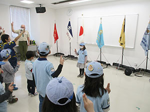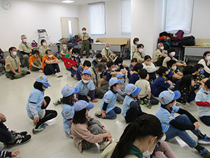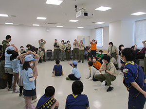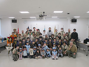 2月23日天皇誕生日の祝日に、団B-P祭を小田南生涯学習プラザで行われました。午前中は各隊集会でそれぞれソング練習やダンス練習を励みました。昼食後は晴れてきたので、ビーバー、カブは屋外の公園で遊んで午後からの式典に臨みました。ベンチャー、ローバーの司会で映像やスタンツでB-Pの生涯とスカウト運動をたどるとともに、カブ隊のコーラス、そして、練習を重ねたビーバー隊のダンスを披露、喝采を浴びました。2部では各隊の2022年度の活動をスライドで紹介。ビーバー隊は、夏の摩耶舎営をBGM入りで流し楽しかった夏を思い起こしました。今日が2023年度登録締切りとあって、リーダー、スカウトも全員集合。今年度もあと2回の活動ですが、濃くて楽しい集会を実施するぞ。(K3)