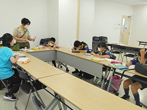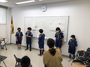 今日は隊長が地区協議会出席の為、珍しく11時からの開始てす。遅い開始時間なのに何人か遅刻。慣れない時間で油断したかな? お昼までの1時間ロープワークと救急のスキルアップ訓練を組ごとに交代して実施。午後から前回王子動物園にて作成した図鑑の中から発表する為、調べてきた動物を模造紙に書いて準備しました。みんな上手に工夫して仕上げてました。今日は保護者会もあり、発表は保護者の方にも子供達の頑張っている姿を参観頂き、カブスカウトに理解を深めて頂ける良い機会だったのではないでしょうか? 今日の優秀組は組でより良く協力して準備していた1組さんでした。全員がチャレンジ章の自然観察官も取得しました。おめでとう!(yukko)