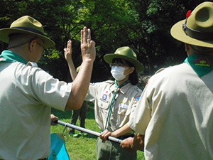 隊集会 ボーイ隊, 行事記録2023 7月 202023 2023年07月02日(日)大物公園 新入隊員(カムバック)のちかいの式、キャンプに向けての訓練、初級面接と、盛りだくさんの隊集会でした。(M34)