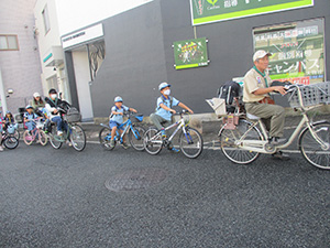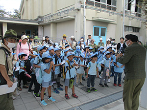 ウォーキング得意のビーバー隊ですが、ちょっと中途半端な距離なので、初めての自転車移動で会場の難波小学校へ。本日ビーバーは4名が地区精励章授与の名誉に輝きました。式典終了昼食後は、アマビバ調査隊SDGsを調べようというテーマで4つのポイントを回りました。ビーバーにとっては難しいテーマですが、実施は意外と身近なところにあるという体験ができました。会場近くのBV隊員Fさんマンション前でアイスクリーム代わりに記念撮影をしました。(K3)