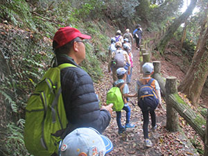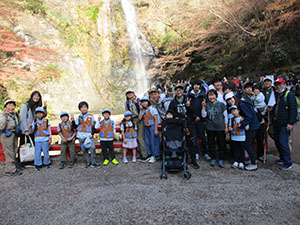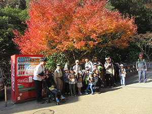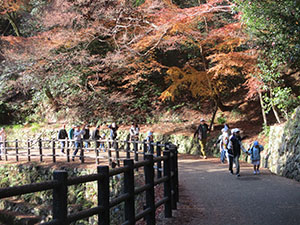 12月とは思えない絶好のハイク日和。初冬の箕面公園はさすがに紅葉真っ盛りとはいきませんでしたが、その名残を十分に堪能できる景色でした。幼児2名をふくめて25名がJR尼崎から川西池田、そして阪急に乗り換え箕面駅に。この気候なので駅前からいっぱいの人、インバウンド効果なのか外人も多数見受けられます。いつものコースを大滝までぞろぞろ歩きます。約1時間で大滝に到着、記念写真を撮り、復路は右岸の地獄谷コースで山道ハイクの醍醐味を味わいます。ここも難なく突破し、昼前に瀧安寺に到着、暖かい日差しのもと昼食。そして箕面昆虫館で蝶々の優雅な飛翔に驚き、帰途につきました。そしておやつは定番「モミジのてんぷら」。ここにきたらお決まりの店で購入し、ほとんどが初めての味を堪能しました。(K3)